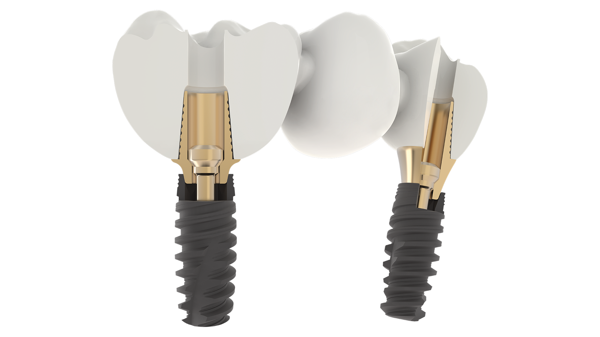 Die Verwendung von Titanbasen verringert im Gegensatz zu direkt auf dem Implantat verschraubten Versorgungen das Einwirken transversaler Kräfte